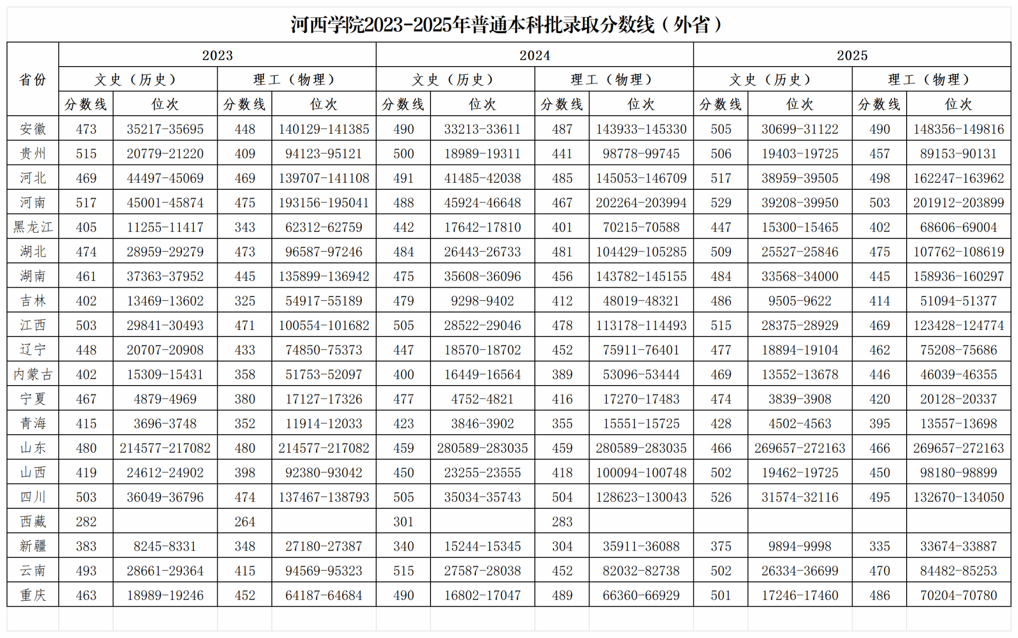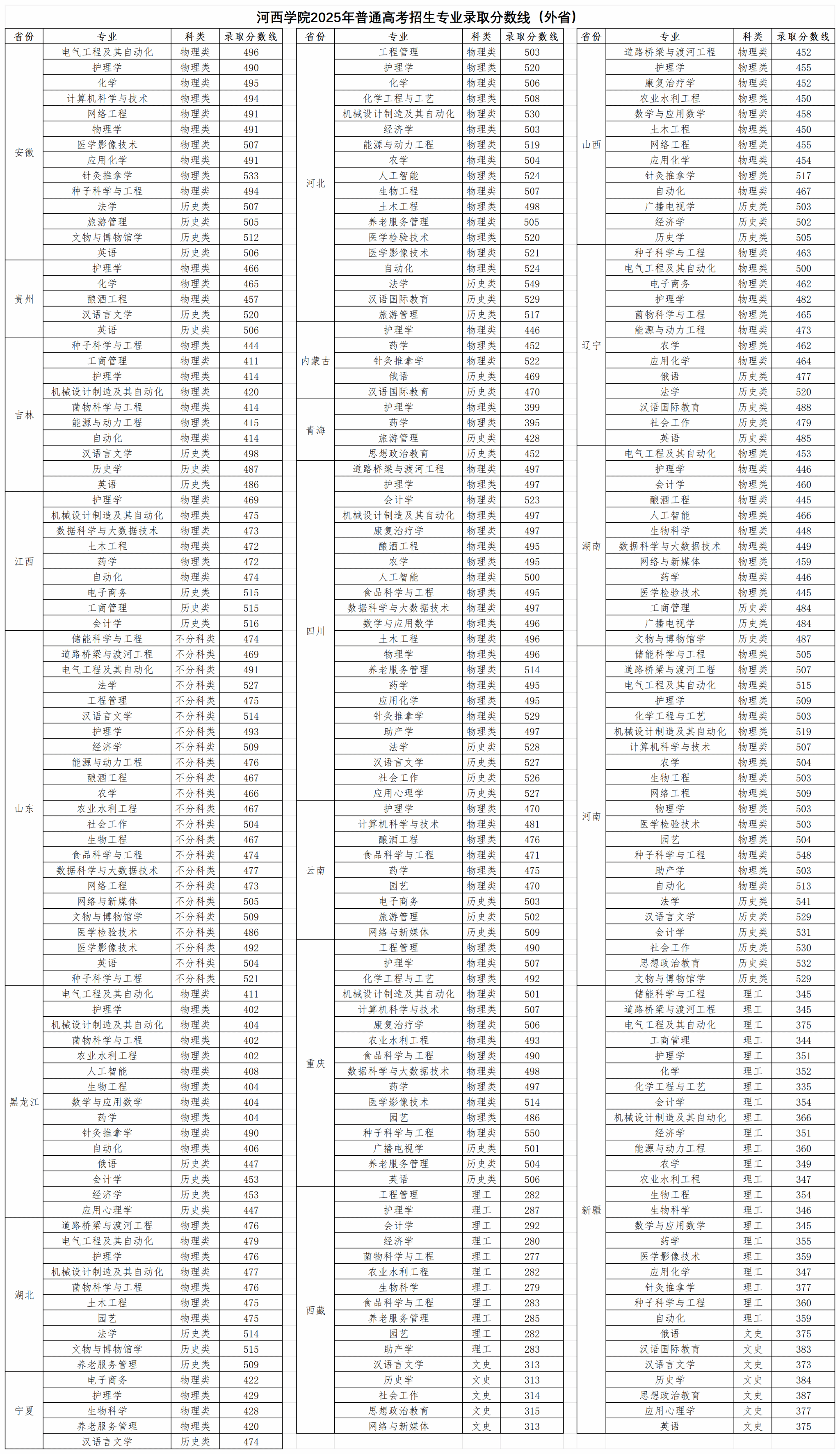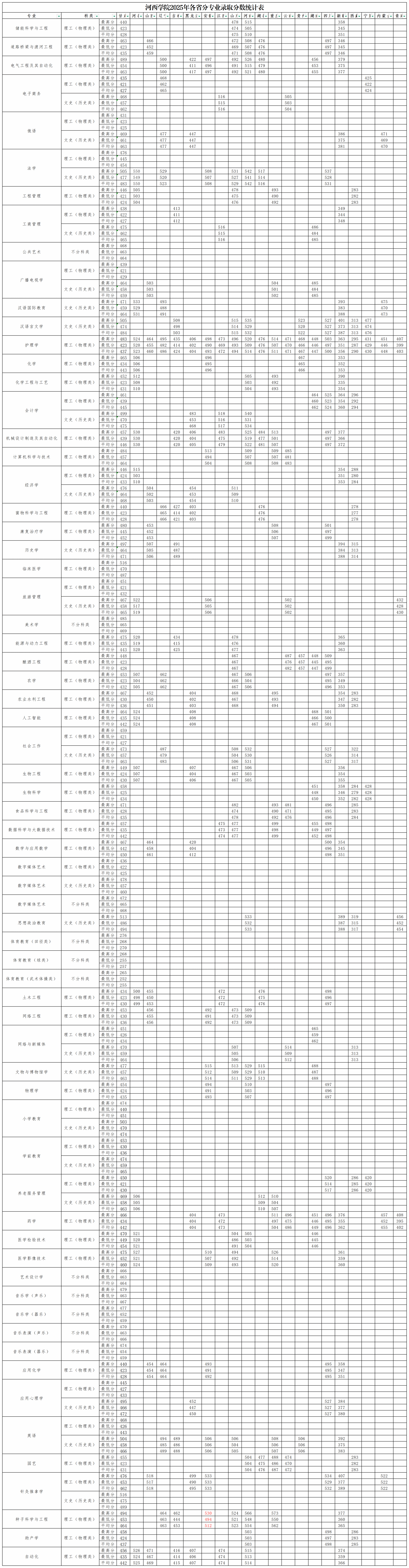 河西学院2025年普通高考招生录取分数